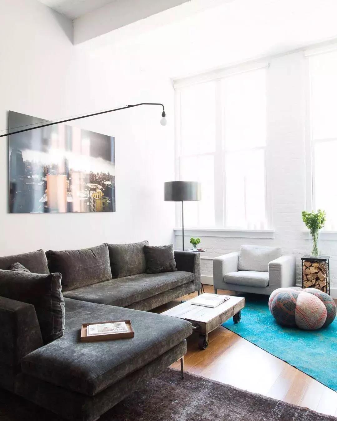 條件允許的話,客廳中央鋪一條毛茸茸的羊毛地毯是最好不過了,踩在上面,腳感舒服,能讓身心都得到放松。