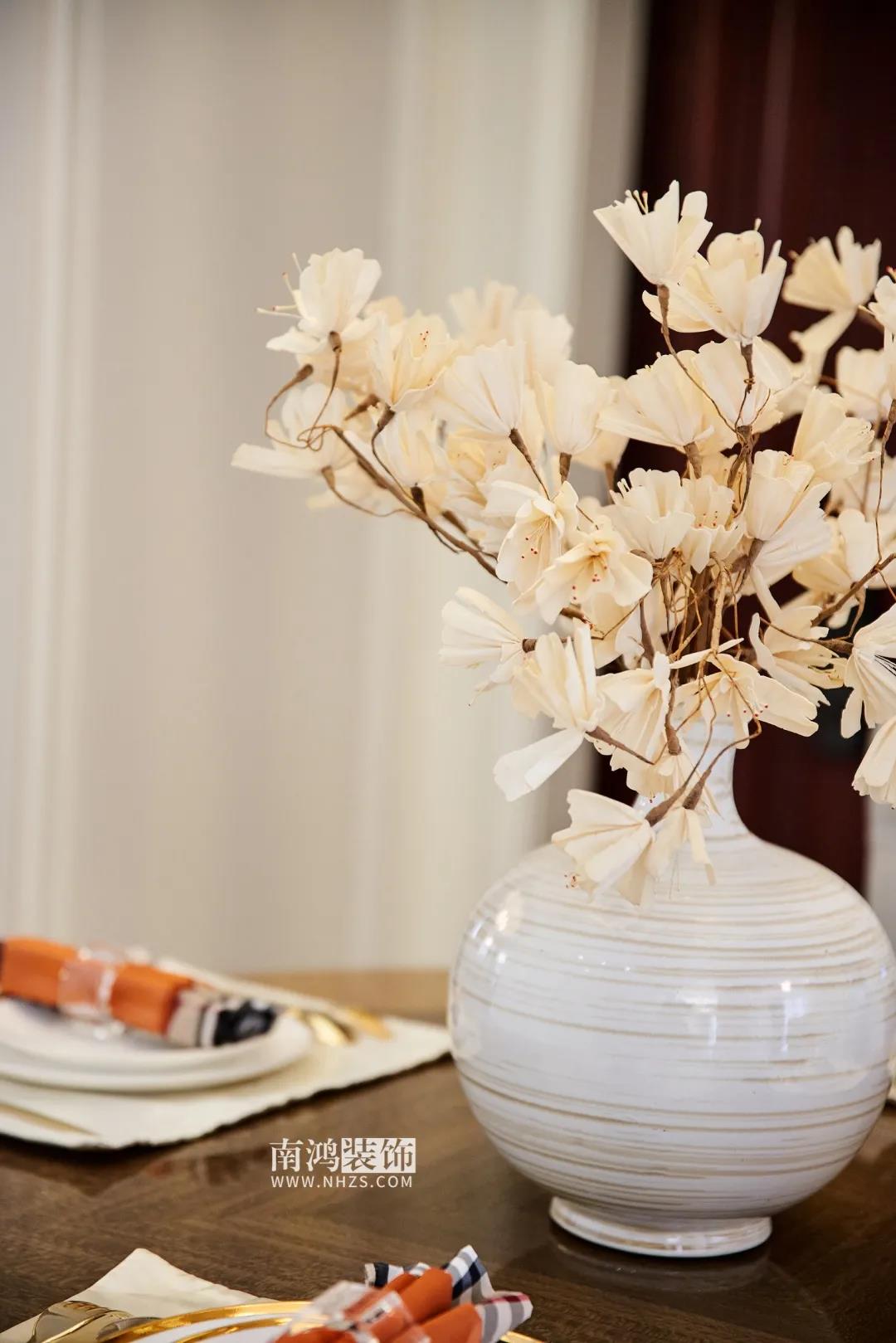 【項目·信息】 地址 / 名門世家 戶型 / Loft戶型 面積 / 139㎡ 風格 / 現代輕奢美式 設計施工 / 浙江南鴻裝飾 本案為業主朱女士的退休住房,平常是夫妻倆居住,女兒一家四口會偶爾過來。朱女士本人性格十分熱情開朗,喜愛旅游、運動,在房屋設計上要求明快而時尚的色彩搭配,以及足夠多的儲物空間。 本案在硬裝上是以實木復合木作和工藝皮革硬包為主要材質,家具軟裝則是在象牙白的基調上,添加入業主喜愛的亮麗色彩和具備現代感的輕奢元素,擯棄了厚重的外形表現,更加注重保留美式特有的溫情體驗。 · 一樓書房采用開放式設計,很好導引了采光。 · 調整了樓梯洞口的長寬與踏步尺寸,定制同色復古風扶手、踏步,讓樓梯區域看起來更有質感。 · 樓梯下方使用木飾面暗門,背后做儲藏室設計,增加儲物空間。 象牙白色,既溫暖又包容,低調而又內斂,作為室內的主基調是再合適不過了。 客廳以現代生活方式的簡約表現融合優雅的美式古典元素,成就別具一格的輕奢空間。 餐廳與客廳之間沒有隔閡,能實現更高的互動性。木質拼花圓桌與圓潤吊頂呼應,演繹出動人的空間韻律。 餐廳一側壁面以大幅鏡面元素裝飾,通過其反射光線的效果擴寬了空間的視覺維度,并極大增強采光。 書房做開放式設計,讓光線可以不受約束地傳遞到外部餐廳的位置,同時留出一部分柜體位置以嵌入冰箱,節省廚房空間。 樓梯洞口的長寬與踏步尺寸均得到精細調整,特意做舊的復古綠木扶手、踏步會更具質感和設計感。墻面定制抽象掛畫,跳躍的色塊激情傳遞著活力因子。 女業主的臥房,為貼合她熱情開朗的個性而選擇了愛馬仕橙的硬包背景來點亮整個室內空間,簡潔又不失格調。 為女兒準備的臥房,更能體現當代都市女性的審美需求。整體以沉穩的中性色為基調,搭配深藍色天鵝絨休閑椅和暗紫色絨布窗簾,富有層次感的色彩輕松打造出頗具藝術感的睡眠環境。