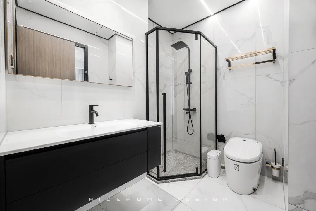 關于家的氛圍感營造,色彩和燈光是至關重要的兩點。 現代風格的色彩設計受現代繪畫流派思潮影響很大,通過強調原色之間的對比協調來追求一種具有普遍意義的永恒的藝術主題,裝飾畫、飾品的選擇對于整個色彩效果則起到錦上添花的作用。 除了色彩上的和諧配比,設計師在本案燈光設計上也下了許多功夫,重點突出:一是燈光功能布局的細化,照明燈光、背景燈光和藝術燈光三種效果有機組合;二是燈光控制的智能化、模式化,也即控制方式由分開的開關變為集中遙控,通過設定視聽、會客、餐飲、學習、睡眠等組合燈光模式,來達到理想效果。 客廳 LIVING ROOM 客廳包進陽臺,最大限度引入外部光線,呈現明亮通透的視覺效果。對于主人而言,室內的隱私也相當重要,因此在陽臺口安上了窗簾。 空間布局開敞,沙發后留出距離讓公區域動線更加流暢。硬裝與家具的線條都十分明晰,簡約的架構創造出清爽有序的居家環境。 質樸的木飾面相比其他材質而言要更加低調,顯露出不張揚的高級感。與之呼應的暖咖色皮藝沙發搭配絨布拼色地毯,和諧的色調、統一的氣質,多種材質交織,賦予空間自然的呼吸與舒緩的心跳。 陽臺一側的立面空間不做絲毫浪費,收納柜中嵌入了洗手臺和直飲水機,視覺上渾然一體。 餐廳 DINING ROOM “是誰來自山川湖海,卻囿于晝夜,廚房與愛。”時尚利落的現代感在餐廳空間鋪展開來,散落于細節間的精致能輕松勾起用餐者的食欲。 餐廳與廚房以長長的玻璃移門相隔,空間視野相當開闊,移門一開,餐廚互動便沒了阻礙。 大理石紋的餐桌組合不銹鋼桌腳,圓角設計勾勒著藝術感知。背景做整墻柜體,除了收納餐具、酒品之外,也方便展示一些個性單品。 廚房 KITCHEN L型布局廚房,有足夠的操作臺讓主人大展廚藝,白色系能將空間寬敞明亮的感覺放大到極致。 過道 CORRIDOR 過道,統一的原木色讓視覺保持極致簡潔,盡頭處的燈光打下來,讓墻上的藝術畫作成功凝固住了剎那間的美好。 臥室 BEDROOM 主臥的陽臺也包進室內,頓時有種面積擴大了兩倍的感覺,更大的面積也意味著更多的活動空間與收納空間。 房間過大容易顯得空蕩蕩的,因此我們在床尾設置了床尾凳和地毯,用以豐富視覺與功能性,頂部依然是簡練的無主燈設計。 睡眠區域簡潔沉穩,高級灰色調與深木色有助于營造安靜而放松的休憩氛圍。 休閑陽臺位置擺放經典的Togo沙發,松松軟軟的坐感簡直不要太舒服! 書房 STUDY 一間高品質的書房背后,必定有著一顆熱愛學習用心工作的靈魂。厚實的桌體組合纖細的桌腳,書桌給人的設計感很強,搭配吊燈和地毯,進一步勾勒出空間的格調與優雅。 休閑室 LEISURE ROOM 家里的休閑室,延續了公區域大面積的灰色質感元素,地臺+懶人沙發+電視,在這里可以自由自在地做自己想做的任何事! 衛生間 BATHROOM 主衛面積富余,在淋浴間和浴缸之外還留出了大量走動空間,再加上雙臺盆設計,力求將舒適度拉到最大。 公衛與次衛,空間分別用灰色與白色的瓷磚統一鋪就,干凈整潔,白凈的基底疊加上黑色線條,看上去會更有品質且視覺不再單一。