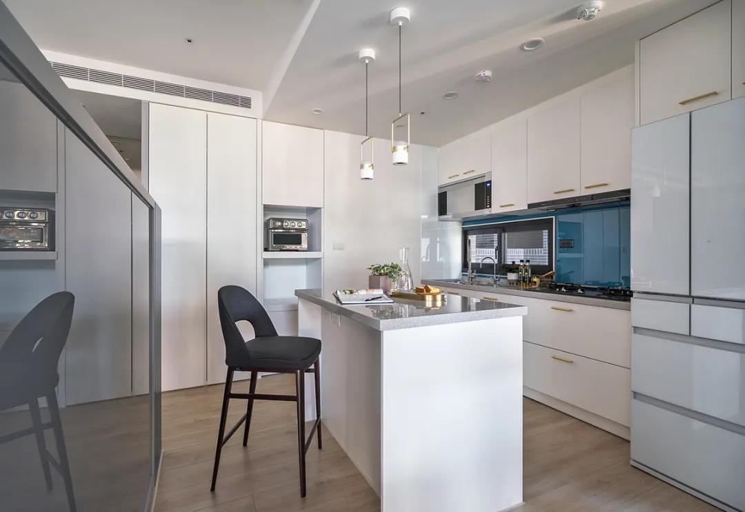 比如,開放式餐廚空間,讓餐廚兩塊區(qū)域的動線共享,實現(xiàn)“1+1>2”的效果,小戶型也能擁有一個比較寬松舒適的做飯、就餐空間。
