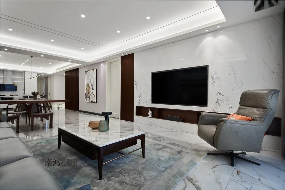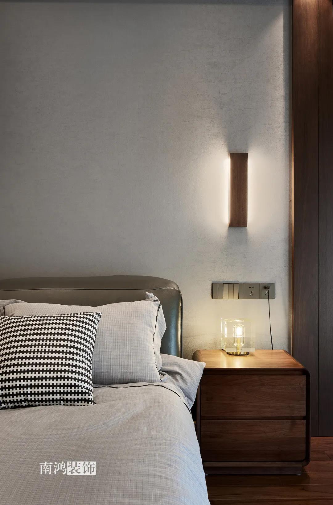 業主是一對年齡45歲左右的夫妻,事業穩定,家庭幸福。夫妻二人熱衷各類美食料理,所以對家里廚房的設計更加重視。 總體來看,戶型面積很大,三室兩廳的格局留給了公區域相當寬敞的可使用空間。設計與選材上秉承現代風格的原則,強調理性而寧靜的室內氛圍,穩重的木料與明朗的石材相配,實現物質與精神的雙重安放。 1、正門對廚房,以豎條木格柵做隔斷。 2、客餐廳兩塊區域中間做一個書吧用以分隔空間,增加層次性。 3、做開放式廚房,餐桌增添島臺,提升空間利用率與家人互動性。 4、北陽臺和女兒房打通,擴充女兒房的使用面積。 玄關 ENTRANCE 入戶玄關以深色的木格柵阻隔視線,既是風水上的考慮,又很好保護了室內隱私。地面通鋪白色瓷磚串聯內外,關于家的第一印象便在此構建。 細木條元素自帶美感,光影的變幻交錯間,涌動出不凡的藝術張力。 客廳 LIVING ROOM 低飽和度色彩與明朗的線條,傳達著主人對簡約品質生活的追求和向往。全屋頂面統一做無主燈裝飾,嵌入6毫米黑色金屬條,極細的線條感透出設計的巧思與靈動之美。 空間以簡潔敞亮的硬裝基礎,搭配素凈的顏色與舒適的軟裝,深色木質元素在其間跳躍點綴著,中和剛冷的石材光澤。 電視機嵌入大理石背景,墻面紋理與地呼應,下開收納格取代傳統電視柜的位置,立面干凈,層次更在一深一淺中凸顯。 視線無論由無主燈頂面還是地面延展,均是順暢無比,大戶型的氣派一覽無余。 客餐之間由小書吧自然過渡,可以當作一個開放式的書房使用,讀書、辦公、品茶、娛樂等多重功能恣意交互,單一空間由此衍生出諸多使用情境。 餐廳 DINING ROOM 餐廳與門廳相鄰,開放式餐廚設計滿足主人的所有美好想象。餐桌的胡桃木色與島臺、廚房的淺色形成對比,雅致的古韻與鋒利的現代感交匯,成為這個家個性的一面展示。 清晰筆直的黑白線條拉伸空間縱深感的同時,也讓客廳和餐廚的視野更顯朗闊。 溫潤的胡桃木紋理典雅大方,空間的詩意氛圍在簡約的線條層次中被有力烘托出來。 廚房 KITCHEN 既可以擴充廚房操作臺面,又能當吧臺使用的島臺,和餐桌結合在一起,大大增加了使用頻率,搭配上款式輕盈的吧臺凳,毫無疑問是餐廚區的顏值與實力擔當。 開放式布局將廚房和餐廳融為一體,潔白柜體把嵌入式電器隱含其中,寬大的臺面足以滿足日常烹飪需求,環形的動線則可以讓人穿梭其中行走自如。 臥室 BEDROOM 主臥背景墻以灰色墻布和木飾面結合,細膩紋理展現有機的溫暖、純凈,燈光被有序在墻頂面安置,讓人倍感安神,又不失高雅格調。 床頭壁燈的瑩瑩微光,帶來夜的凝思。床尾放一把小羊羔絨椅,圓潤線條惹人喜愛。光影之間,居室氣質自顯。 寧靜灰是次臥的主導色,納入的陽臺讓室內采光更加充足,滿滿當當的柜體則將空間的收納力放大到極致。 陽臺被細心布置為休閑一角,為主人譜寫出愜意的生活橋段。 衛生間 BATHROOM 衛生間整體保持極簡的格調,黑白配色更顯潔凈,臺盆柜纖巧落地,視覺上倍感輕盈。